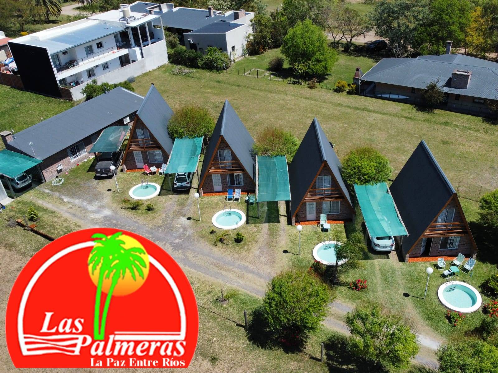 Otra vez las Palmeras haciendo de las suyas. Ahora a metros de la entrada al Parque Termal (Pte Perón y Lamboglia) las nuevas cabañas Las Palmeras II, ideales para 2, 4 y 6 personas, esperan al visitante para brindarle todos los servicios individuales, con una piscina exclusiva por cabaña. Un lujo en La Paz, Entre Ríos.