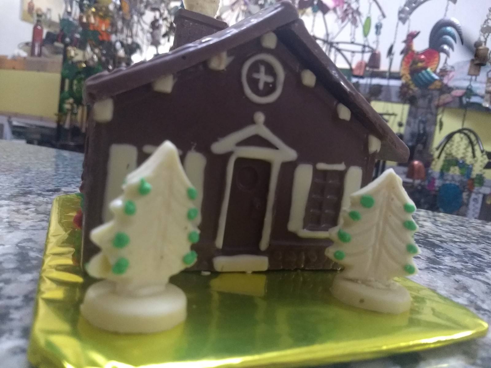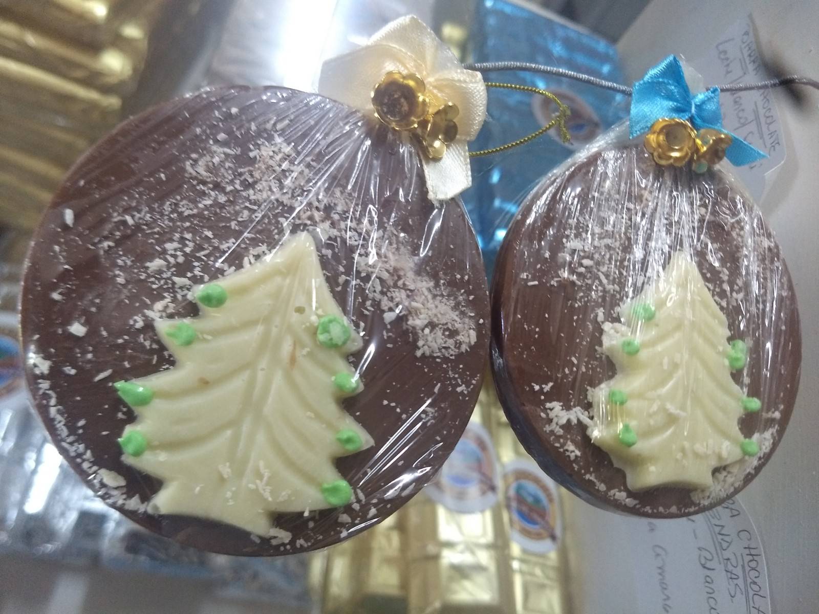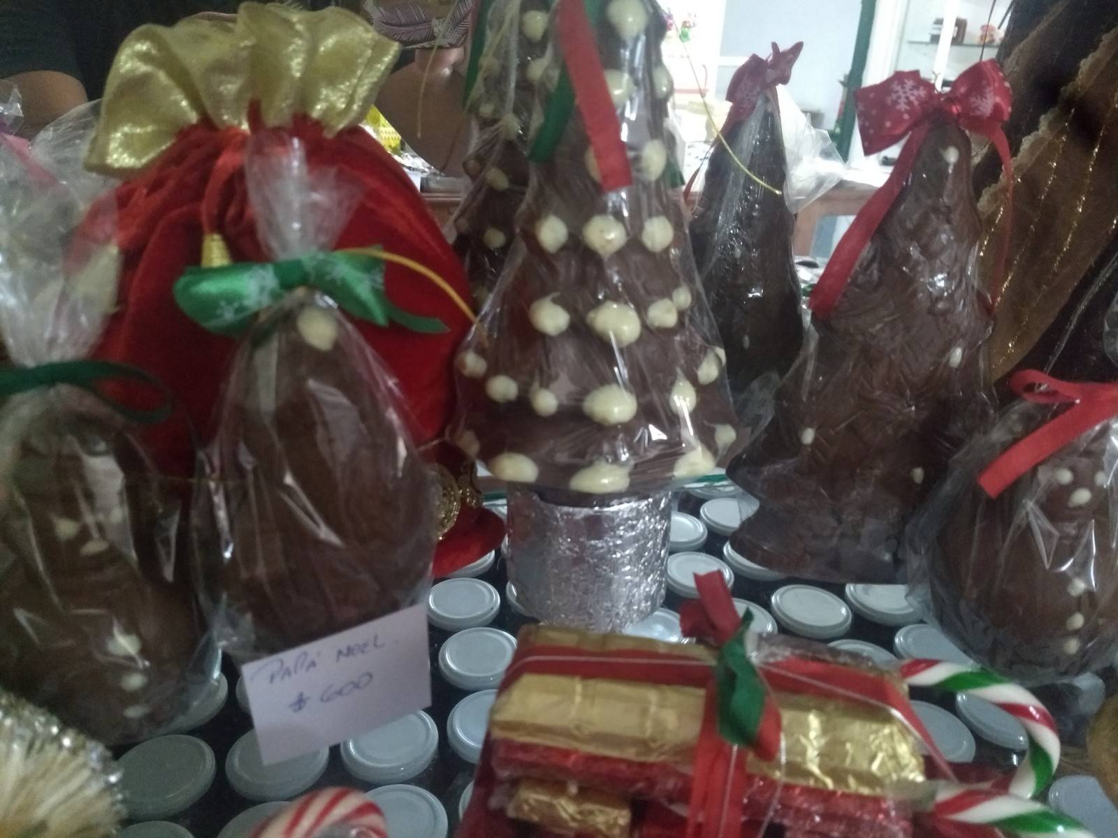 Entre ellos se destacan la típica cabaña con chocolate y chimenea, el famoso trineo, arbolitos de chocolate blanco y negro, figuras alusivas a la Navidad como campanas y guirnaldas de chocolate y por supuesto los típicos muñecos de nieve que no pueden faltar en el invierno del hemisferio norte.
